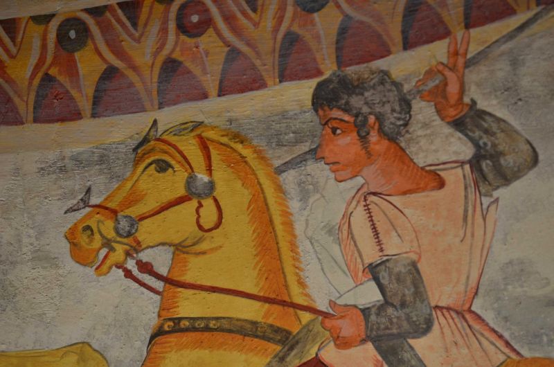 The building has played the role of heroon (temple-mausoleum). Impressive figures of horses and detail presented harness, which according to the color is of gold, silver and bronze applications. Applications’ location on the straps, saddles and breast is important for the interpretation of already known sets. Over the heads of the horses are depicted decorations shaped as labrys.